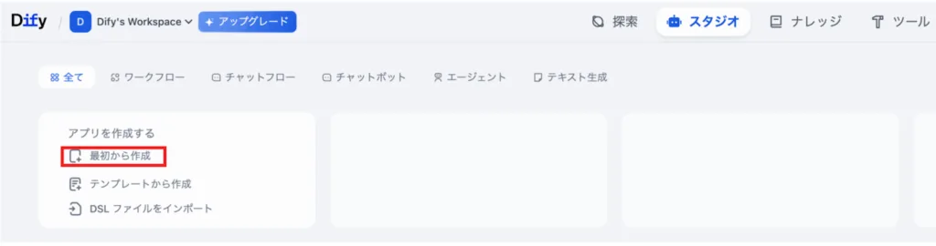 Dify公式サイトからアカウントを作成し、すぐにブラウザ上で利用できます。セットアップが不要で手軽に試せます。