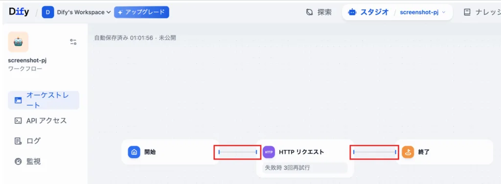 DifyのワークフローからそのAPIを呼び出し、スクリーンショットを取得・出力