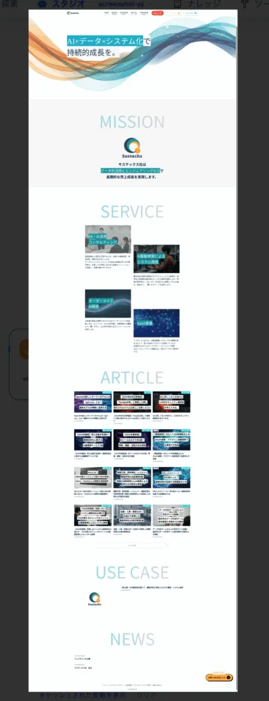 当社のサイトではアニメーションやJavascriptなどが入っているものの、アニメーション後のスクリーンショットが取得出来ていることが確認出来ます。