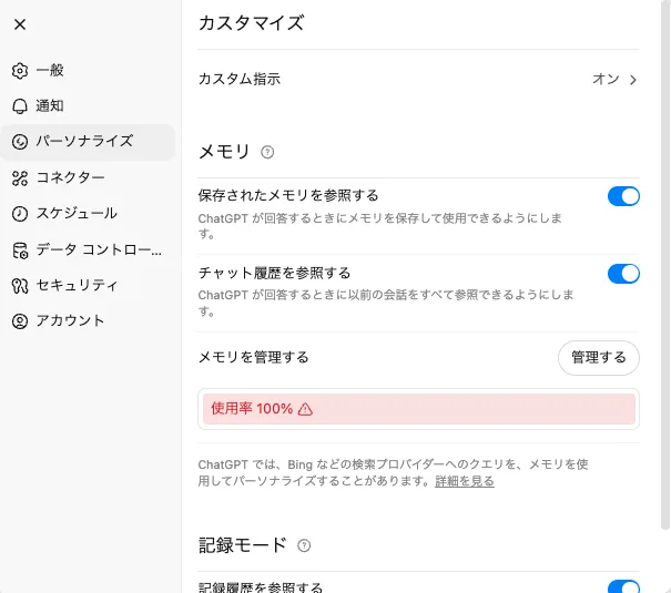 パーソナライズメモリは仕組みとしては単純で、「日々のチャットの履歴に基づいて、ユーザーの個人的な情報を蓄積する」といったようなものです。この蓄積したメモリの中から適切なものをコンテキストに追加する、といった仕組みです。