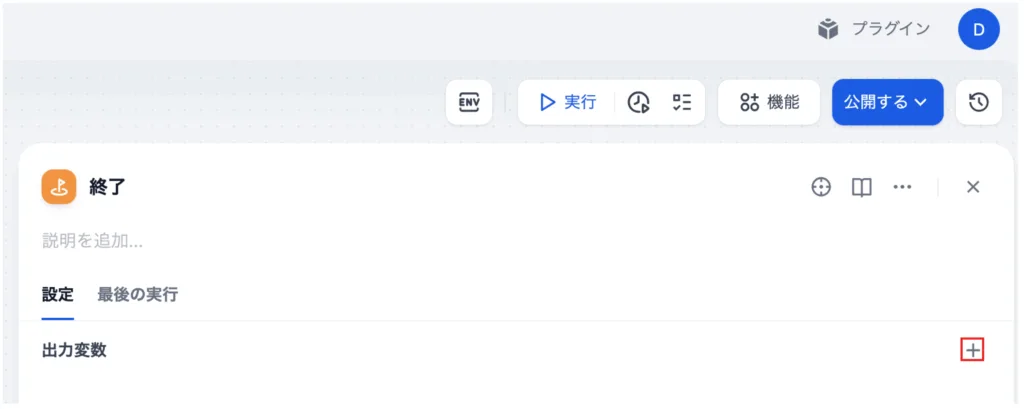 週力ブロックを選択した後に、出力変数の右の「+」をクリックして下さい。
